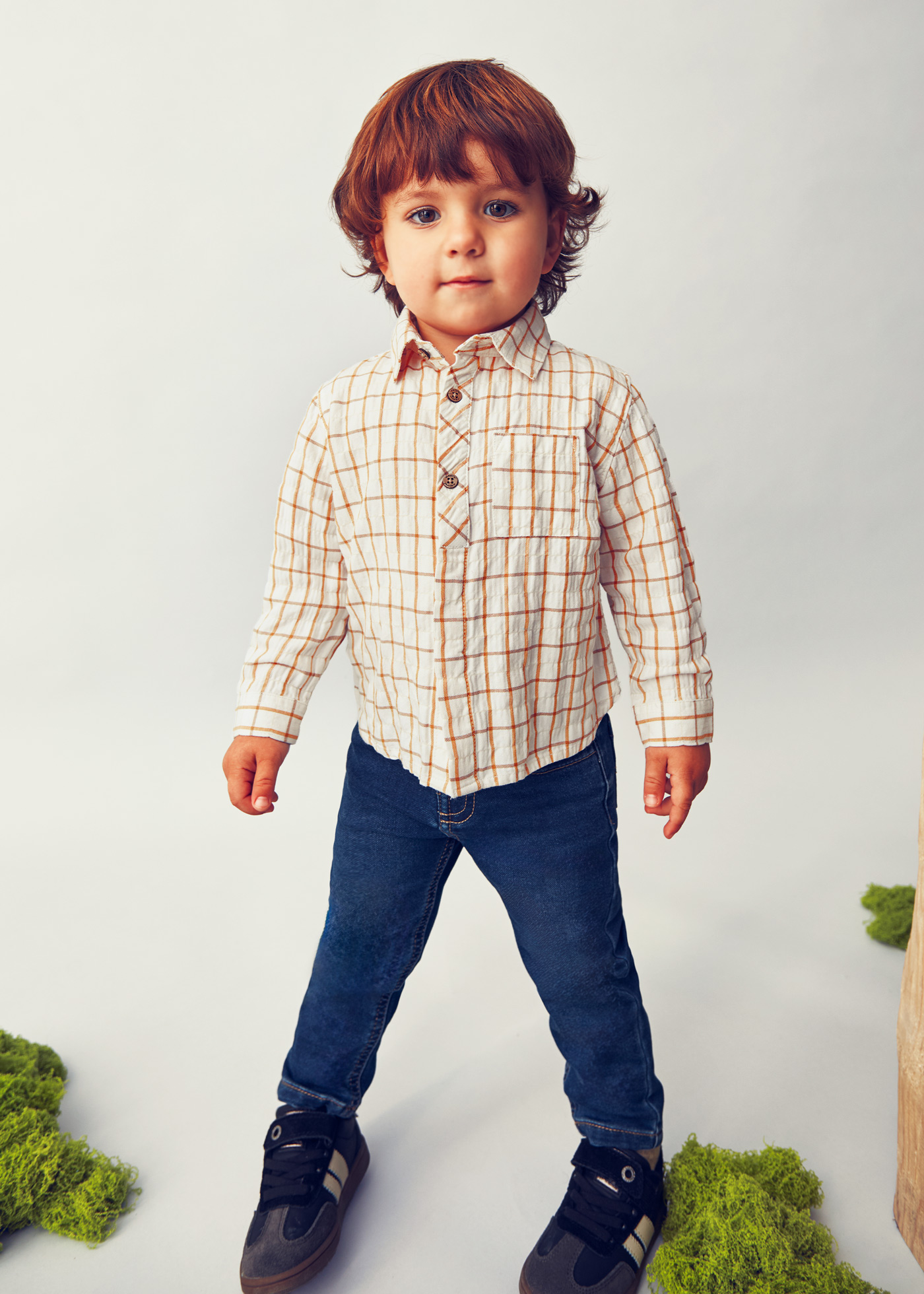 Camisa de manga larga para bebé. Tejido fluido para una máxima comodidad en el día a día. Bolsillo funcional en la parte delantera. Motivo de cuadros.