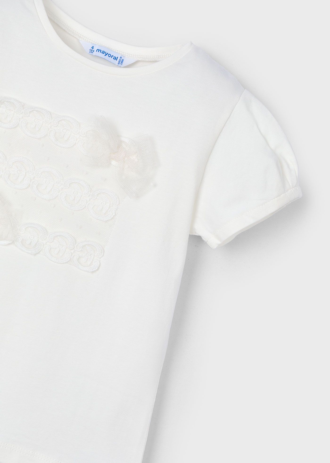 Camiseta m/c lazos plumeti 92% Algodón 5% Poliéster 3% Elastano Temperatura máxima de lavado 3 Prohibición de lejía Secar en vertical Planchado a temperatura máxima No lavar en seco