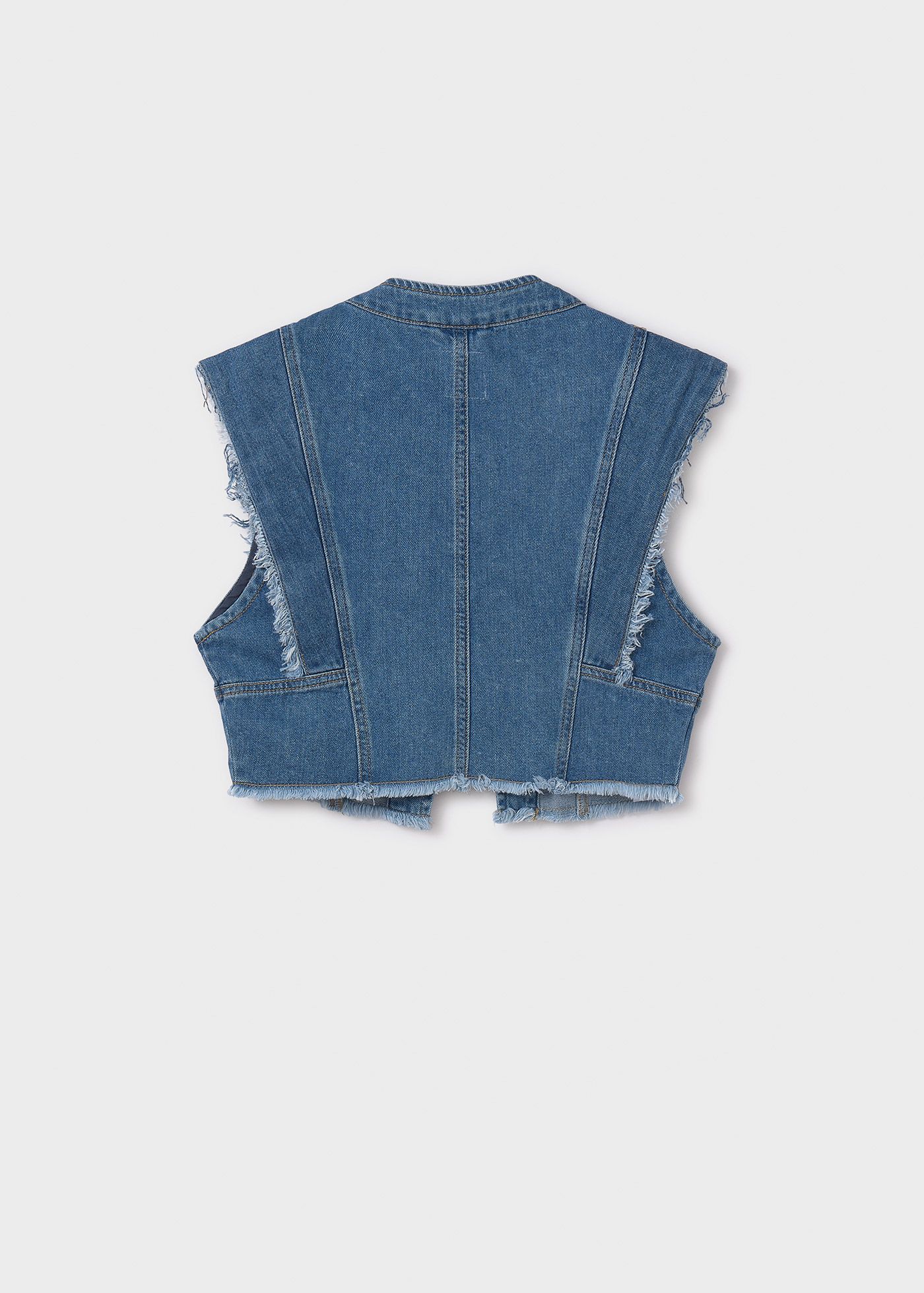 Chaleco tejano 100% Algodón Temperatura máxima de lavado 3 Prohibición de lejía Se puede secar en secadora, te Planchado a temperatura máxima Limpieza con percloroetileno,