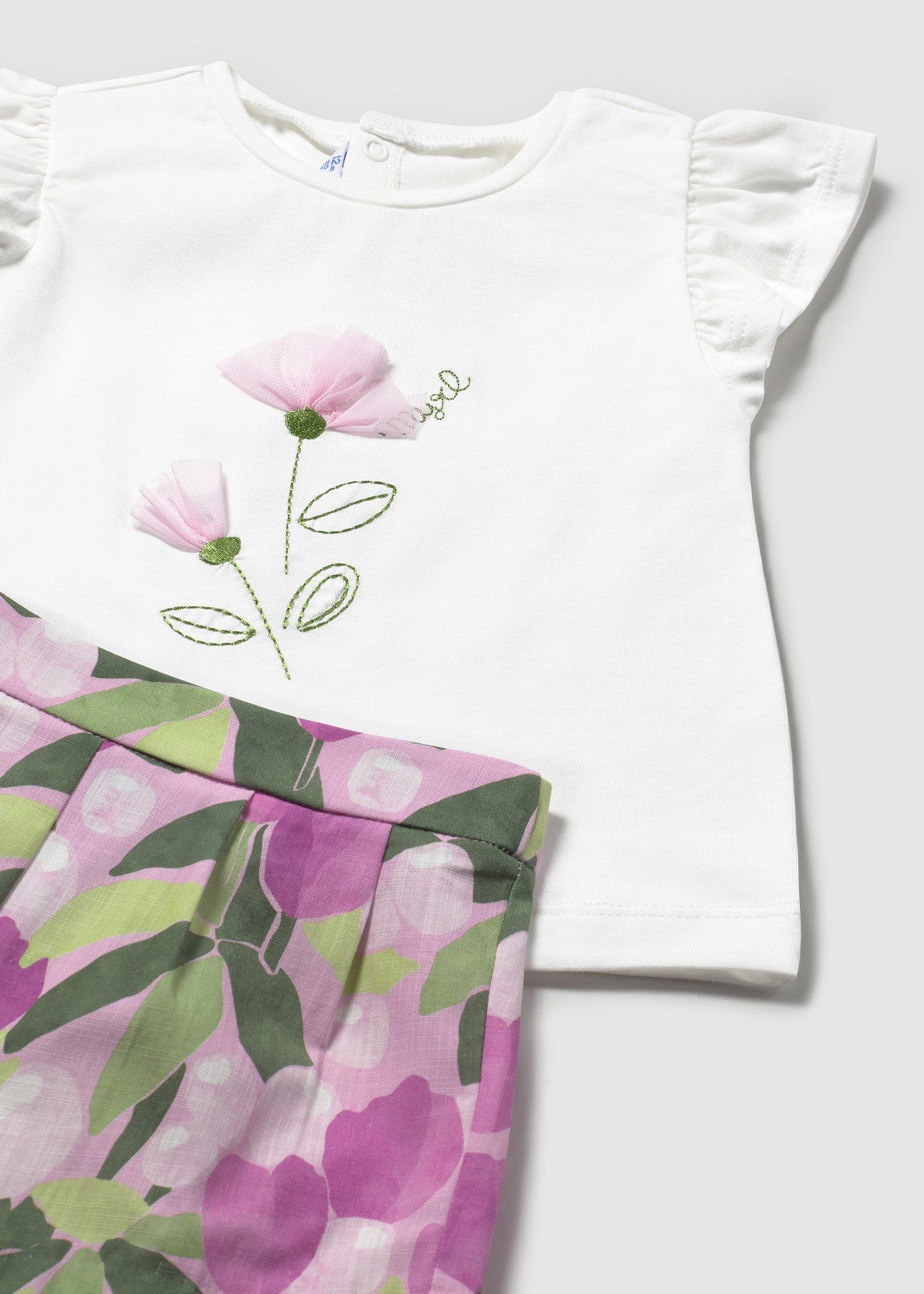 Conj. bermuda estampada 95% Algodón 5% Elastano Temperatura máxima de lavado 3 Prohibición de lejía Secar en vertical Planchado a temperatura máxima No lavar en seco