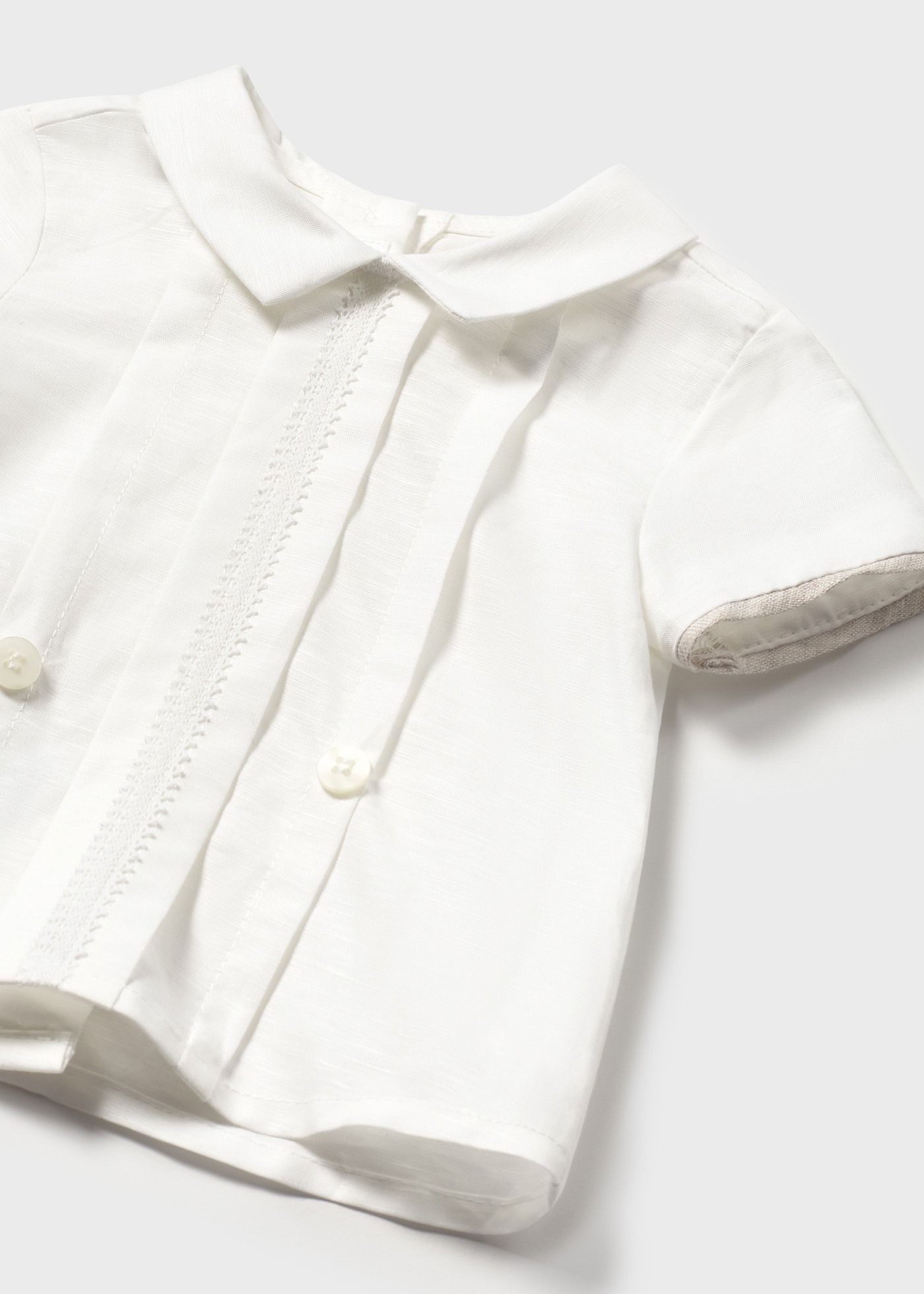 Conj. pantalon corto fajin 65% Lino 35% Algodón Temperatura máxima de lavado 3 Prohibición de lejía Secar en vertical Planchado a temperatura máxima No lavar en seco