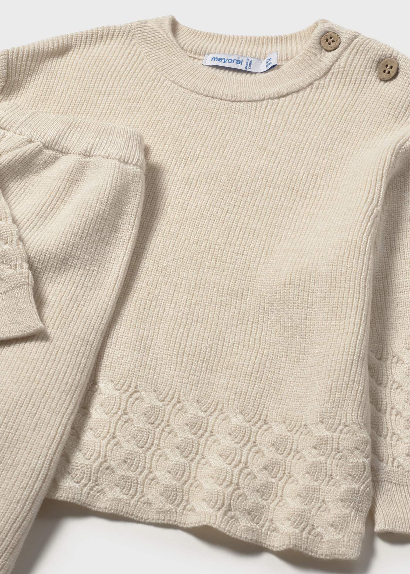 Contiene poliéster reciclado. Conjunto de jersey con pantalón largo a juego para bebé. Tejido de punto tricotosa de tacto suave y agradable.