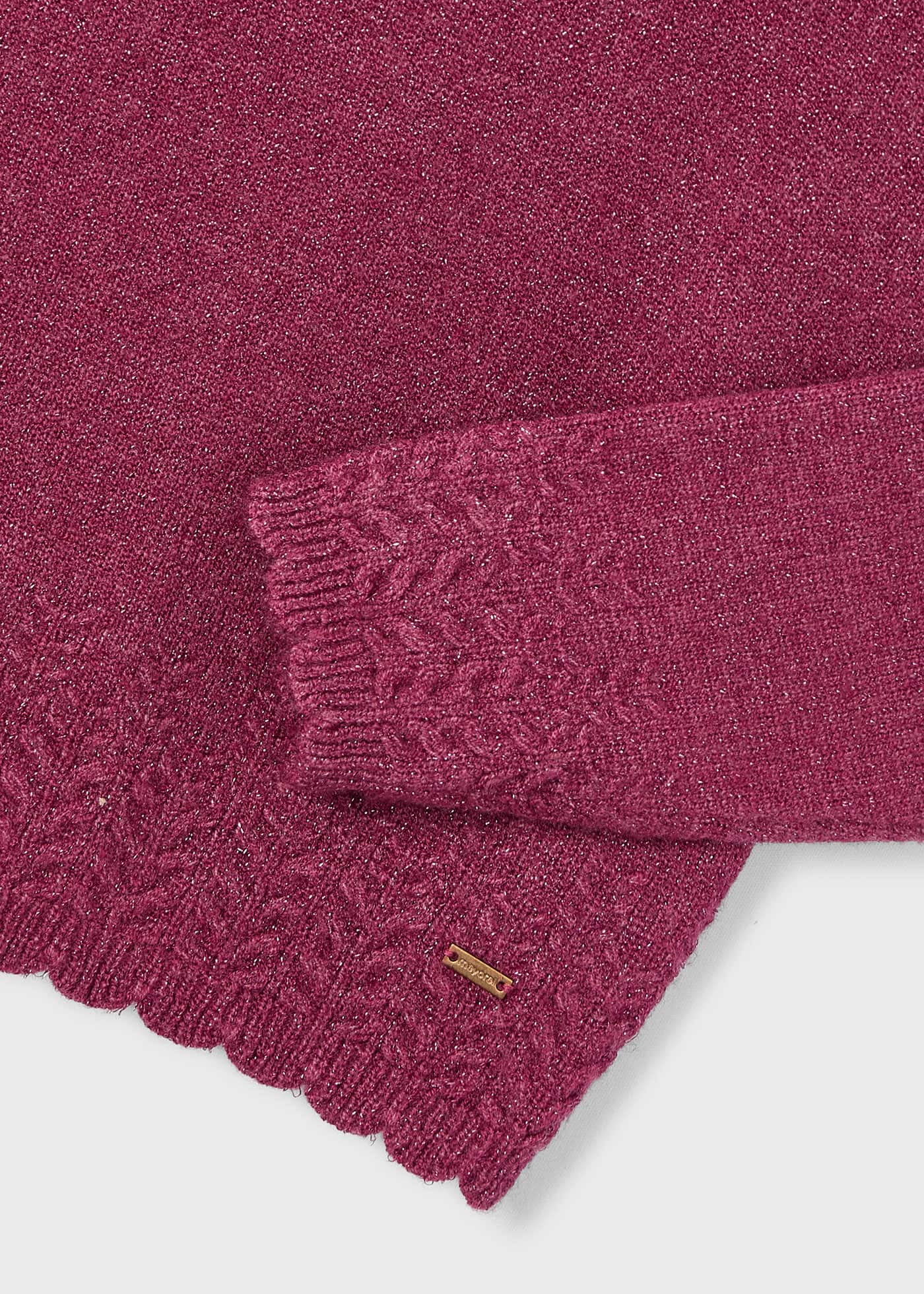 Jersey de manga larga para niña. Cuello con ondas. Cómodo tejido de punto. Diseño con terminaciones en ondas.