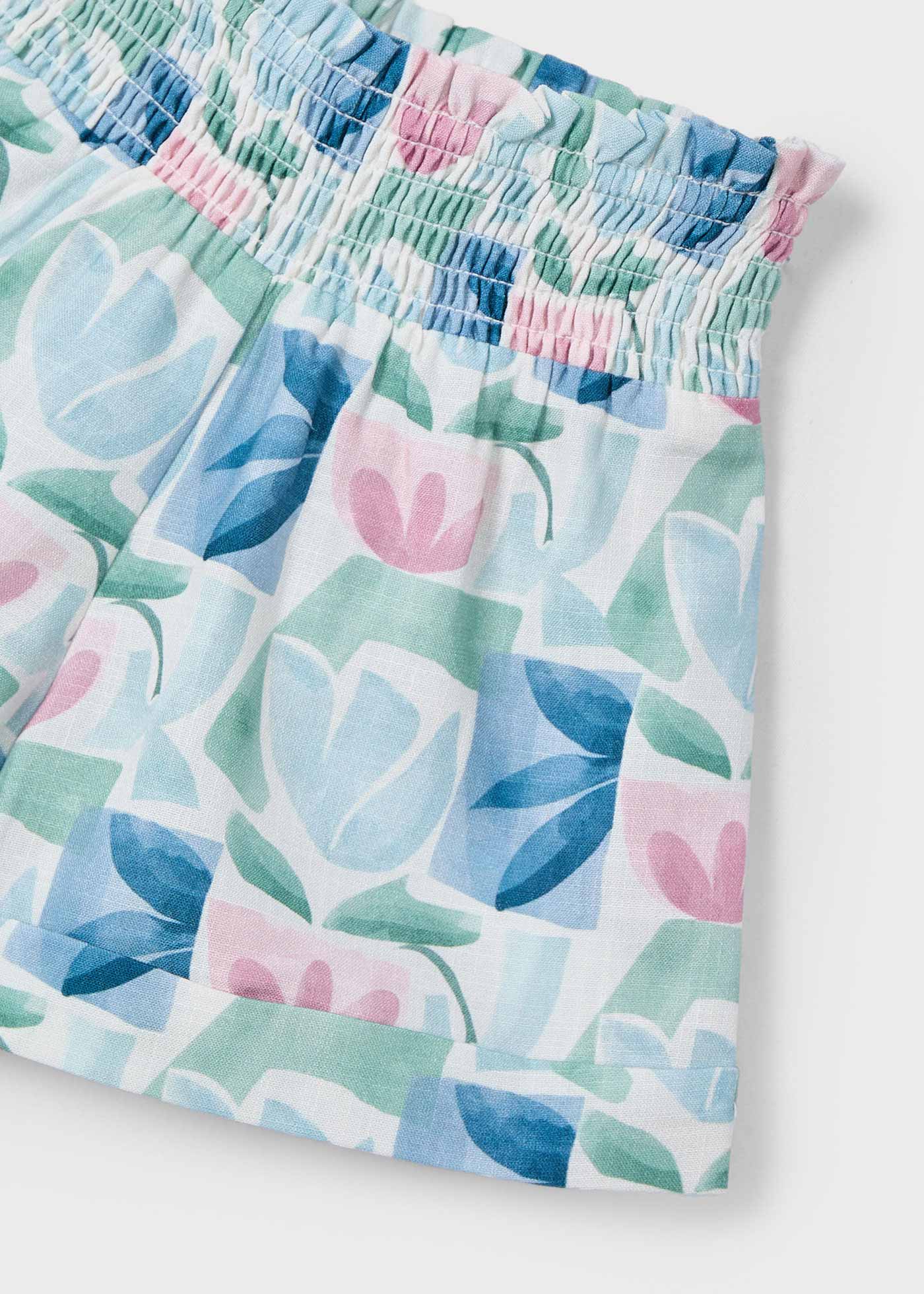 Pantalon corto estampado 100% Poliéster Temperatura máxima de lavado 3 Prohibición de lejía Secar en vertical Planchado a temperatura máxima No lavar en seco