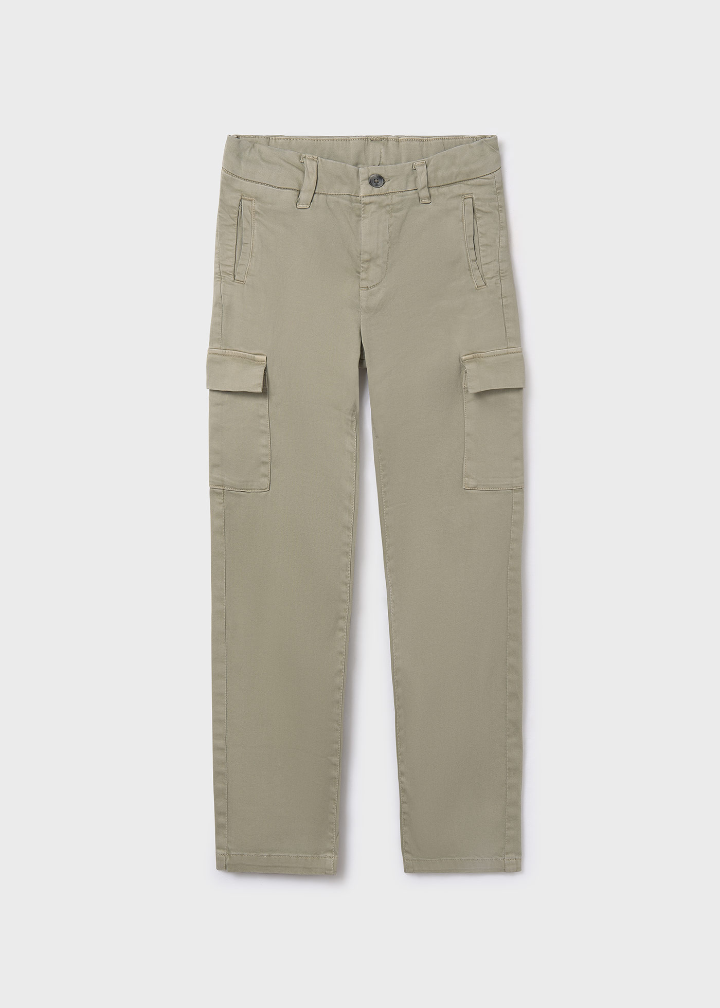 Pantalón largo para chico de tipo chino y corte recto, perfecto para las ocasiones más elegantes. Cierre con cremallera y botón. Goma elástica regulable con botones en el interior de la cinturilla para mayor ajuste. Diseño con múltiples bolsillos.