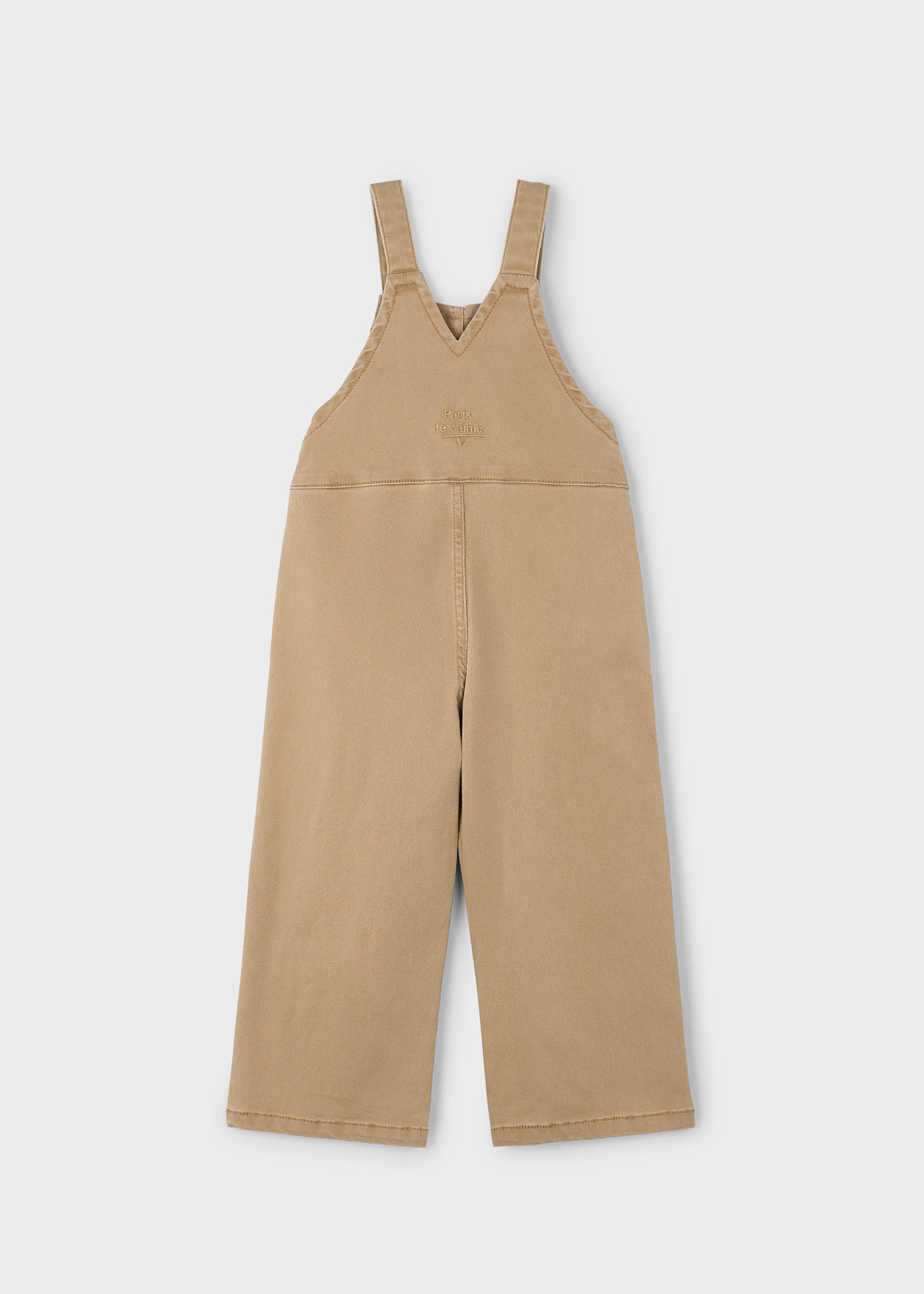 Original pantalón peto para niña. Cierre con botones. Cómodo tejido de sarga de gran resistencia. Bolsillos funcionales en la parte delantera.
