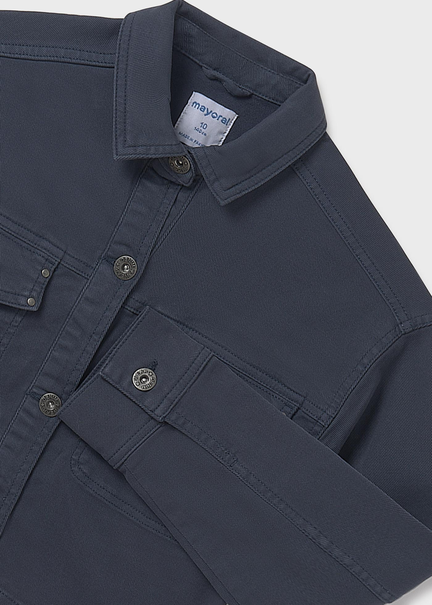 Sobrecamisa de manga larga para chica. Cuello camisero. Cierre con botones en la parte delantera. Cómodo tejido de sarga de gran resistencia.